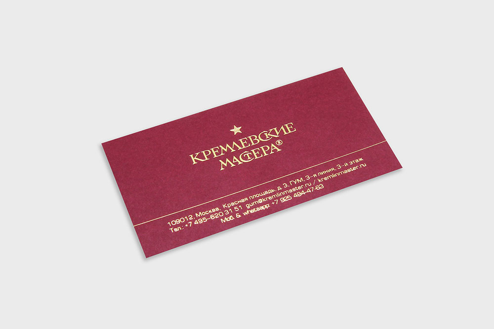 После того как графика утверждена, определяются материал и способ изготовления. Когда технического задания нет — подбираем сами, чтобы визитная карточка выглядела так, как задумано, и вписывалась в планируемую стоимость. Если задание есть — работаем по нему.